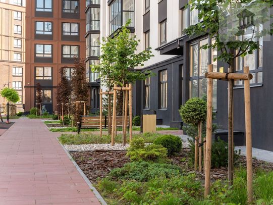 Разнообразное озеленение -более 100 сортов взрослых растений. Предусмотрена система полива растений дождевой водой, прошедшей очистку.