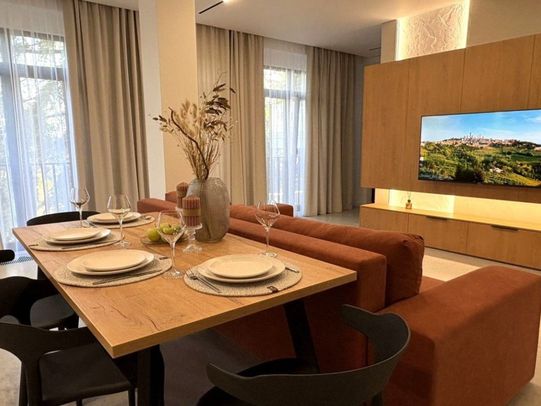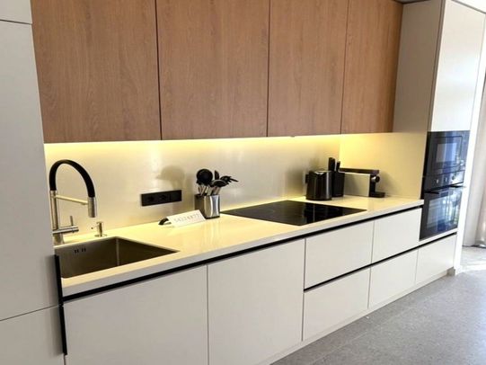 Просторная кухня-гостиная с выходом на балкон, релакс-зоной с большим TV, совмещенный санузел с ванной и душевой кабиной.